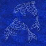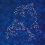Dolphins Sashiko Panel Sealife on Royal Blue
