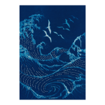 Japanese Seagulls & Waves Cyanotype Sashiko Panel