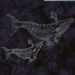 This version of “Two Whales” is printed on a lovely Kaufman indigo batik that has a looser weave than most batik.